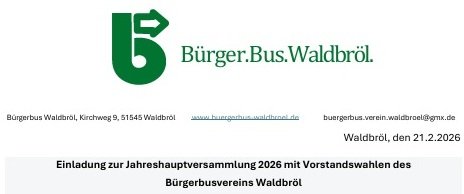 der Vorstand des Bürgerbusvereins lädt Sie hiermit herzlich zur diesjährigen ordentlichen